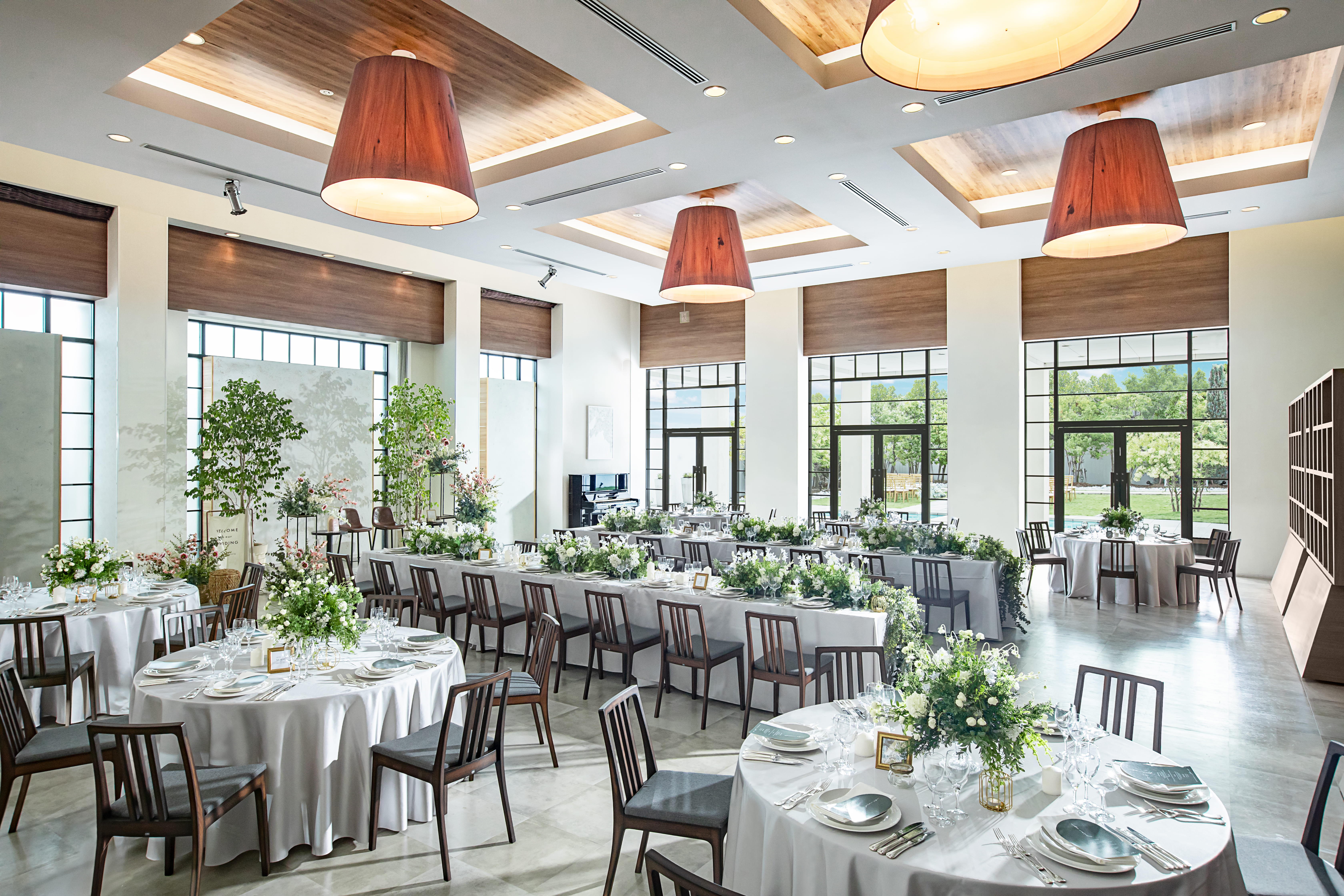 リニューアルしたばかりの会場は、開放感あふれるガーデンとプールサイドを備えた非日常的な空間。
