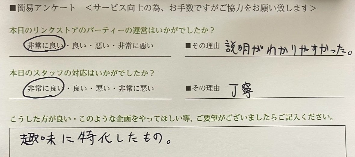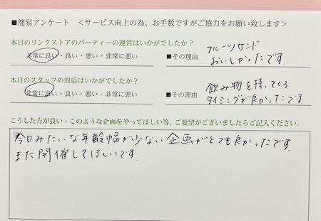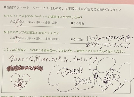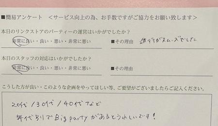 楽しくパーティーにご参加いただけるようサポートさせていただいております。