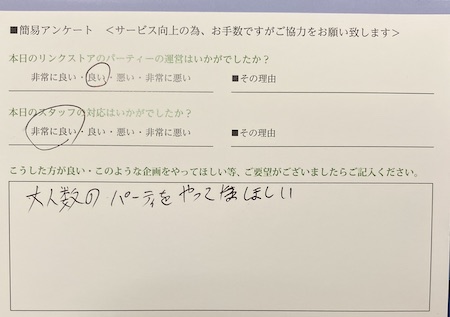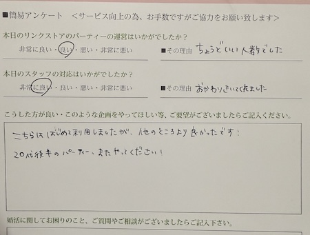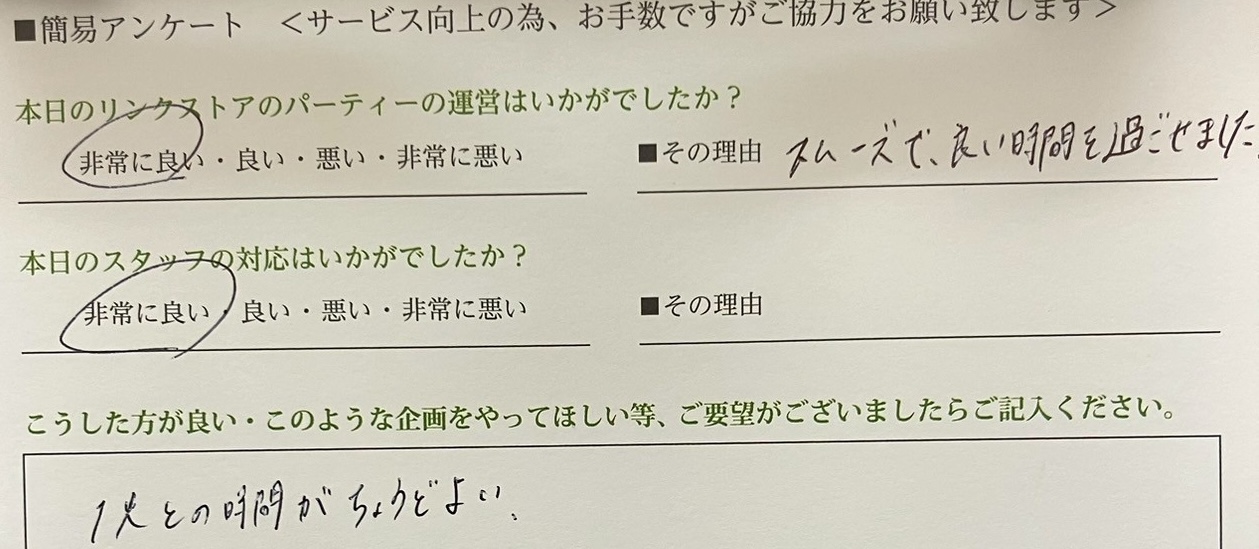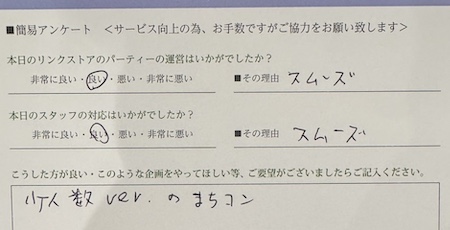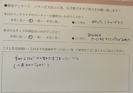 パーティーの種類にもよりますが、 リンクストアでは12~15 名を適正人数として会話疲れもしにくいです。