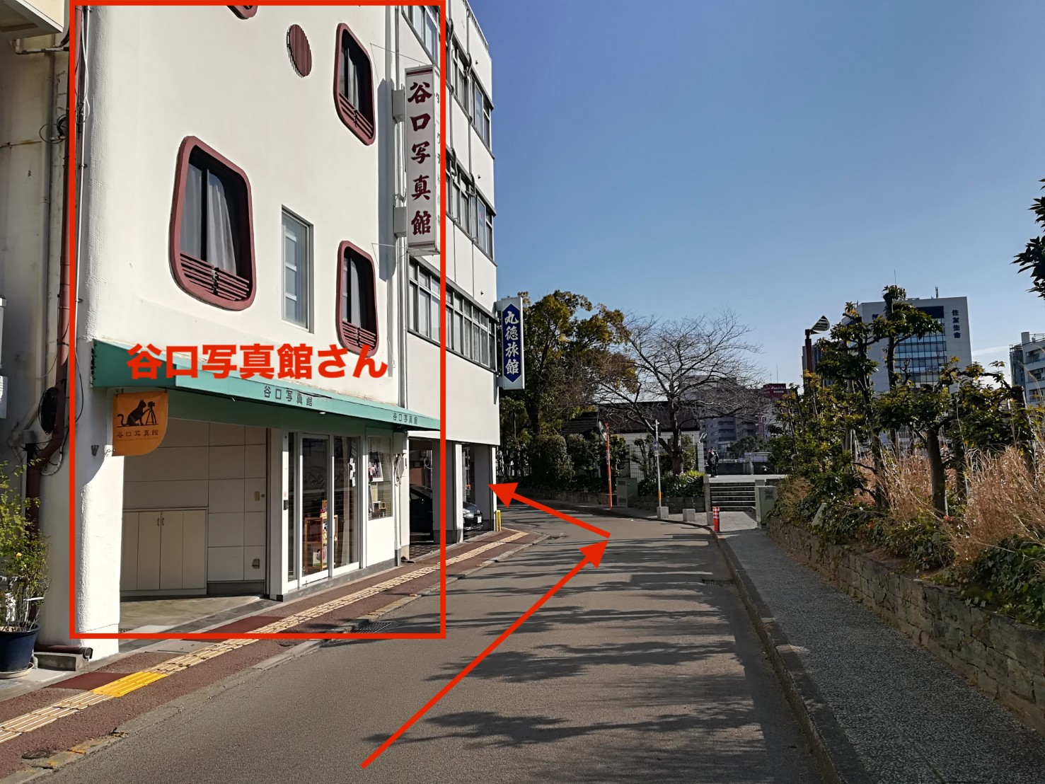 「谷口写真館」を左手にしたままお進みください。