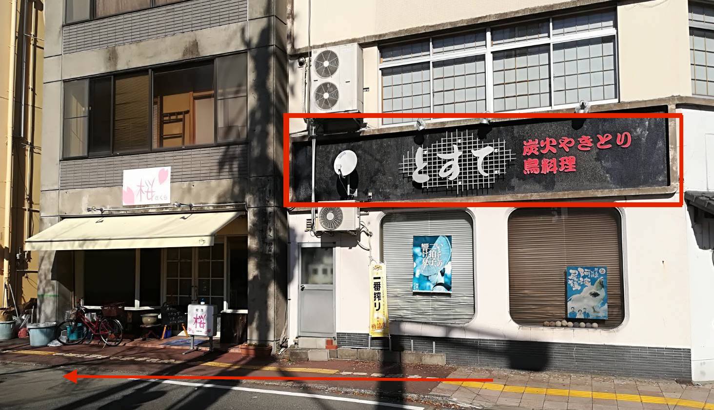 焼き鳥屋の前が左向きの一方通行でございます。