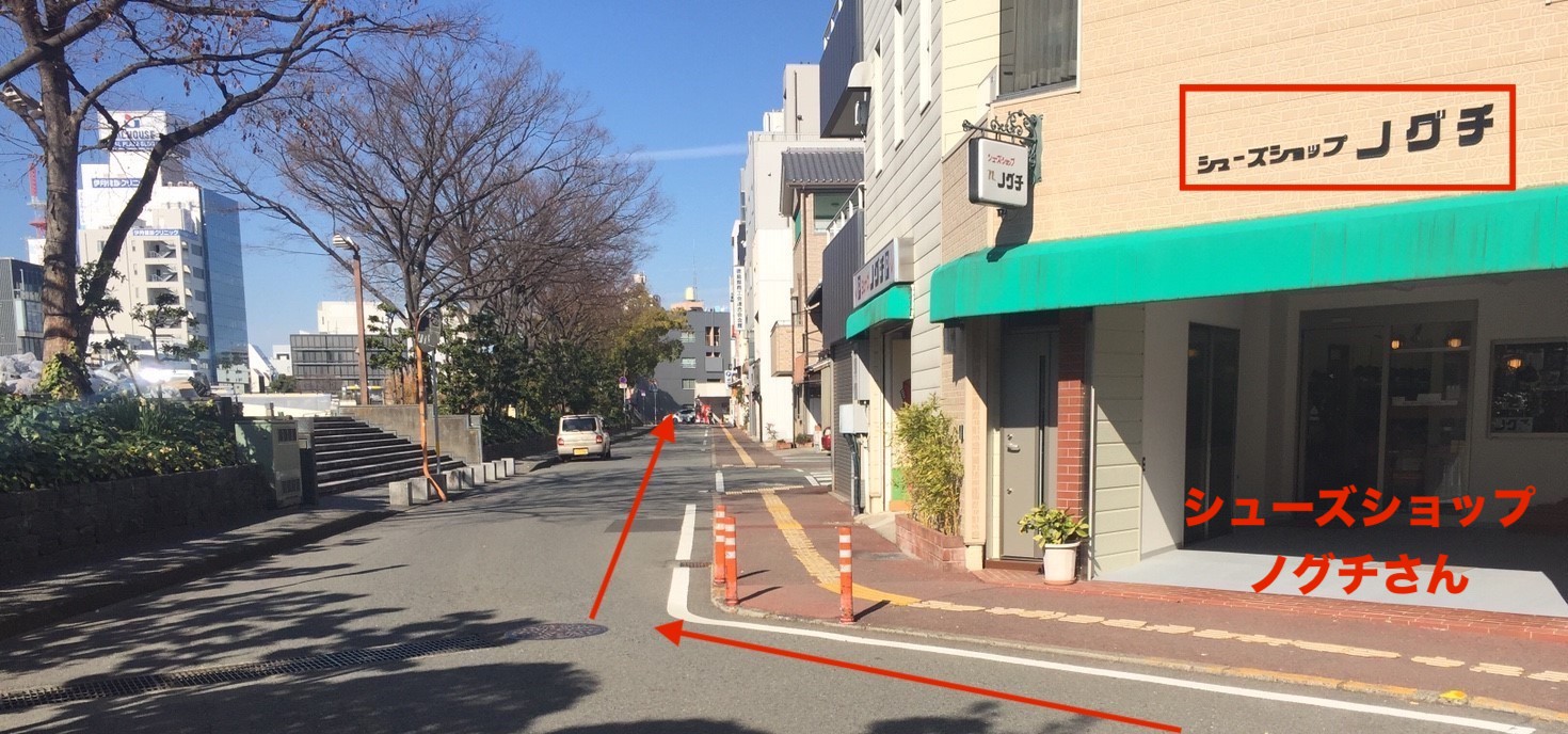 シューズショップ「のぐち」さんの前の道を