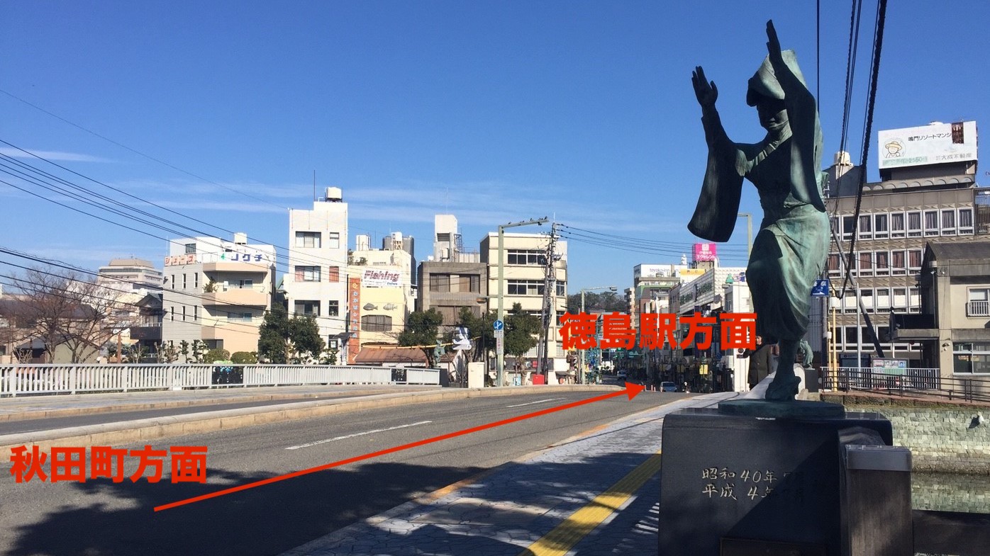 秋田町方面から徳島駅方面に歩いて行くと、両国橋がございます。