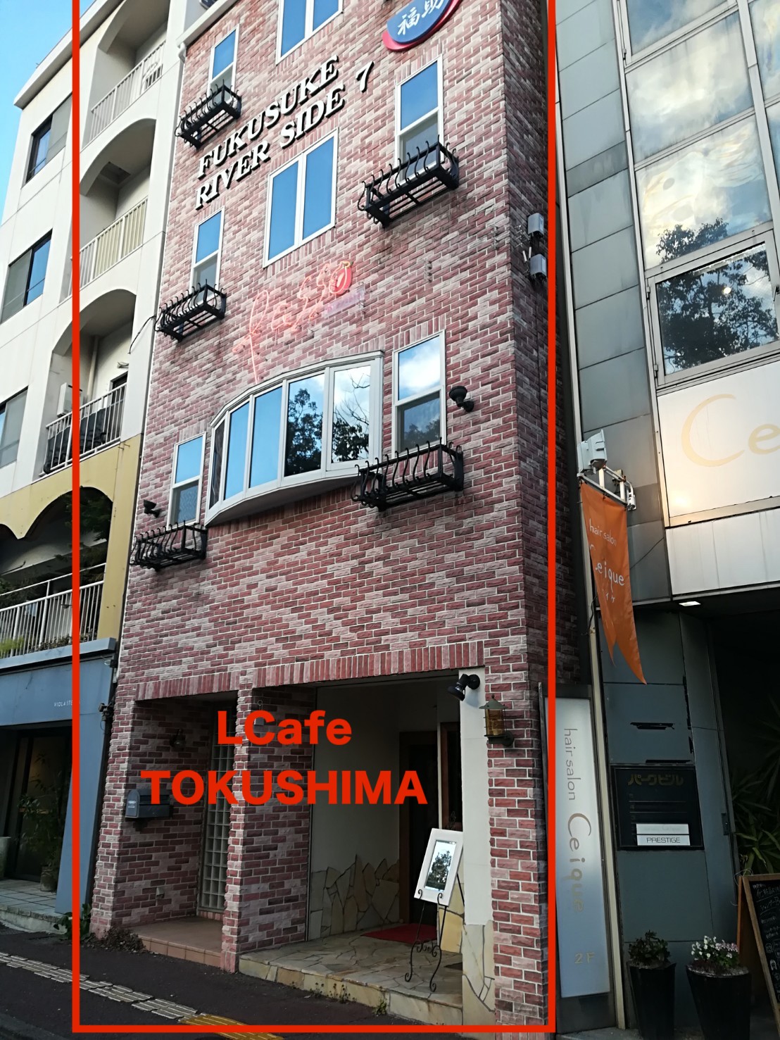 レンガ造りの建物 1階が「LCafe TOKUSHIMA」