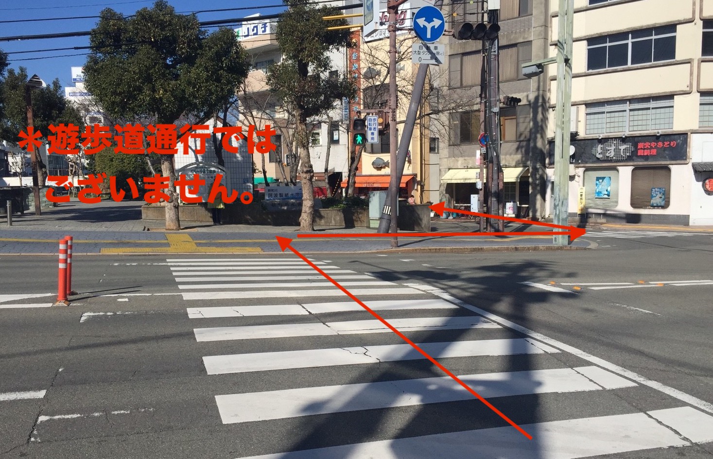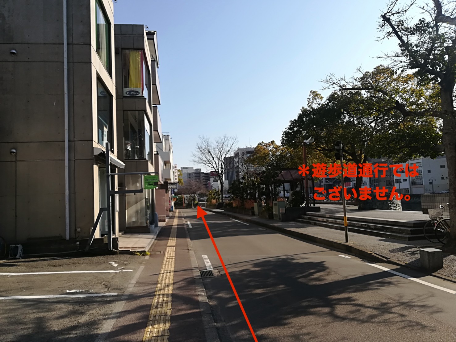 *間違って遊歩道を歩かれますと店舗が見つけにくくなってしまいます。