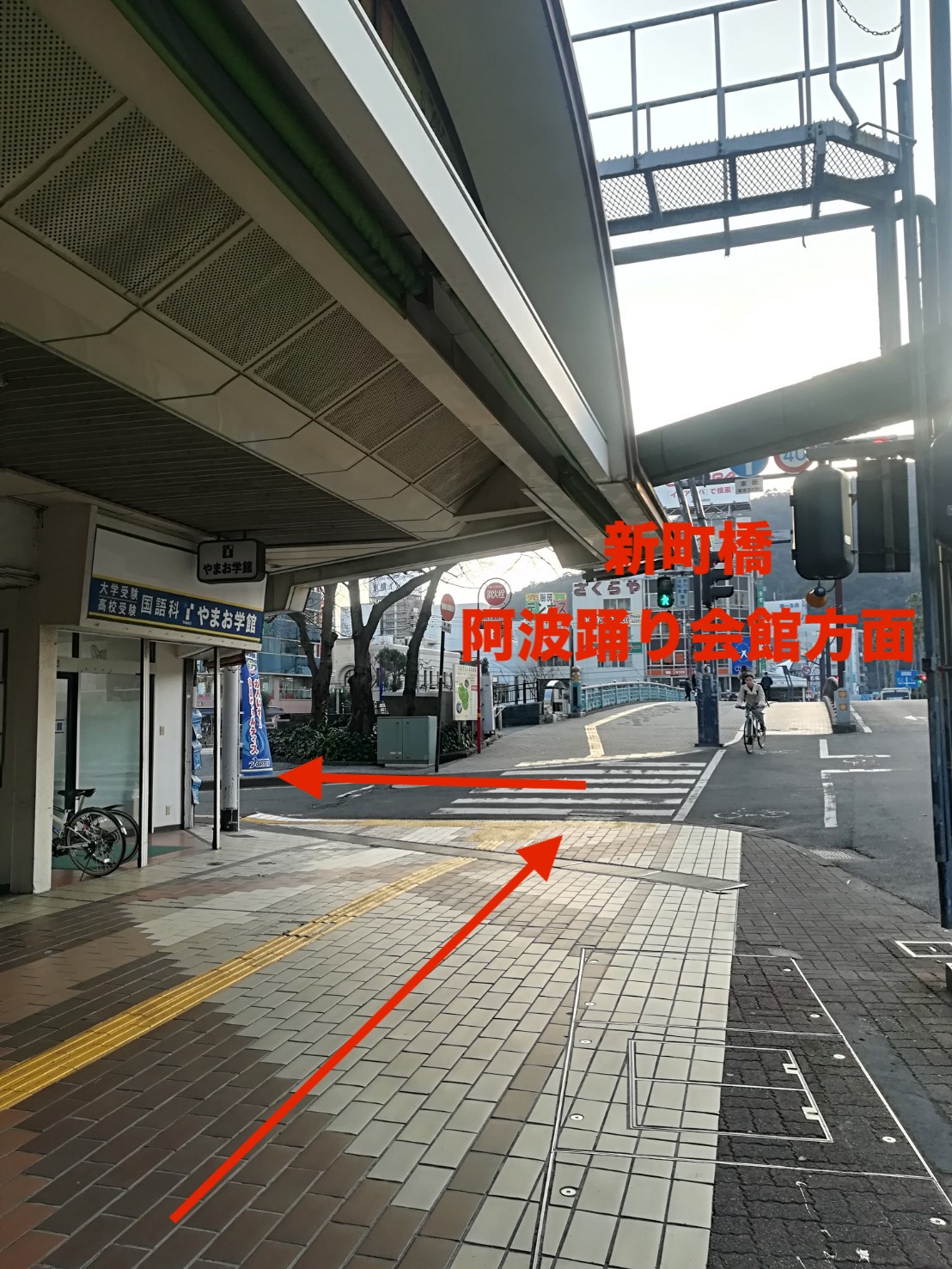 横断歩道を渡った後、徳島駅方面に進んでいただきます。