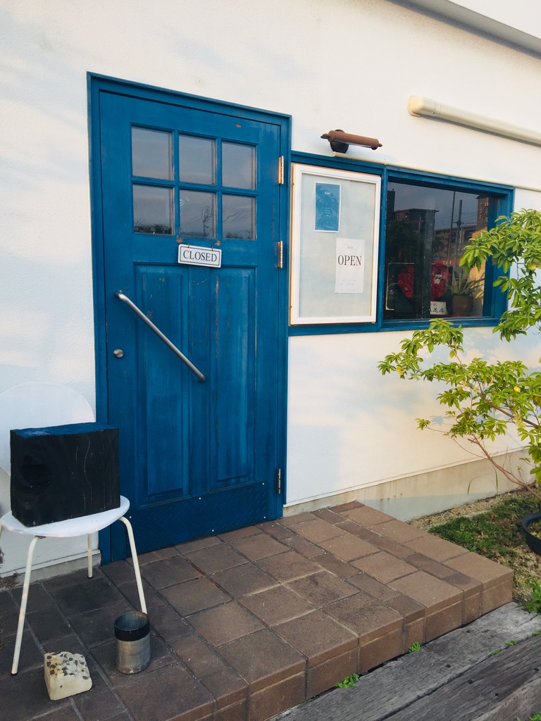 cafe Ailey(カフェ アイリー)イオンタウン東隣、いたずらたまごさんとガソリンスタンドの間の青い扉のお店です