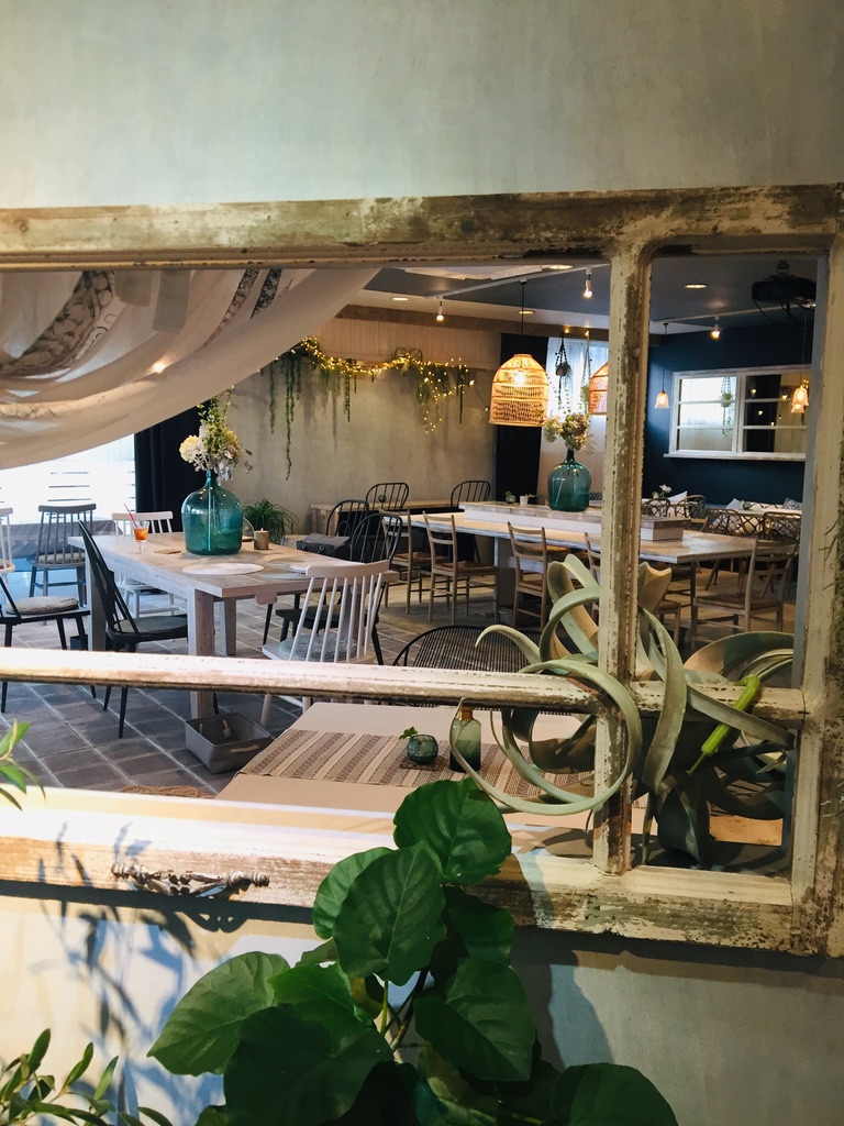 真っ青なドアが印象的なお店は中に入ると西海岸をイメージさせるオシャレで落ち着く空間です