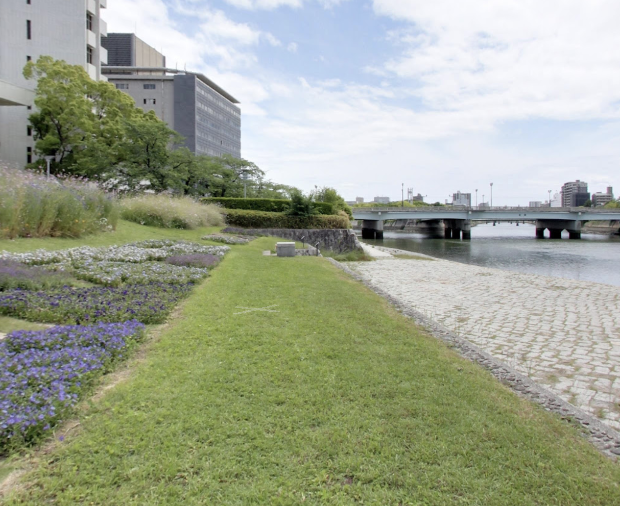 市電に乗ってお越しの方:原爆ドーム前電停から、広島ゲートパークに向かって歩き、すぐ横の川沿いの方へ(徒歩5分内)