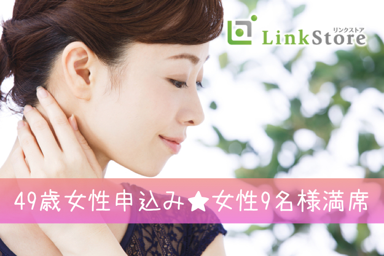 《49歳女性申込み♡》女性9名様満席♪只今<♂8名:♀9名>残り男性1枠のみ★女性は看護師さんやOLさん、医療事務の方などお申し込み済♡女性はキャンセル待ちのみ受付中♪