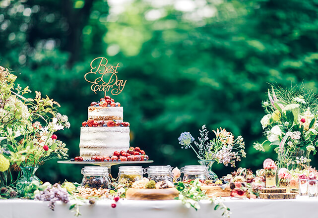 :結婚式場の豪華スイーツビュッフェとドリンク付き
