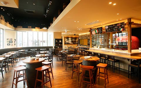 イタリアを感じさせるスタイリッシュで開放的な空間で、本場ナポリの手作り薪窯を使ったピッツァなど楽しみながら大人数に出会える