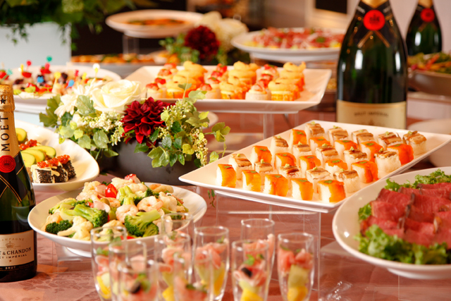 会場ではシェフ特製の豪華ビュッフェ&ドリンク飲み放題をご用意