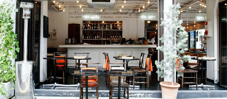 <場所は電鉄【八丁堀】電停下車、平和大通り方向へ徒歩6分。地蔵通りに入って二つ目の信号の交差点に​お店がありますおしゃれなオープンテラスが目印