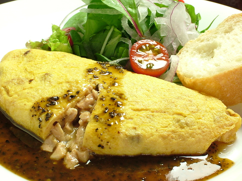 そして、フレンチのコース料理ですので、このオムレツを中心にサラダ、魚料理、オリーブ牛、デザート