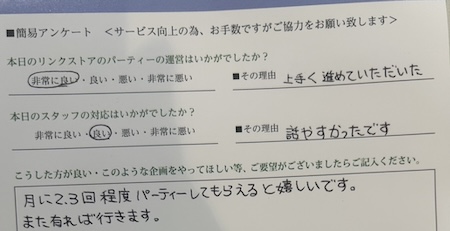 今回のパーティーは、男性10名:女性10名の20名様にご参加頂きました