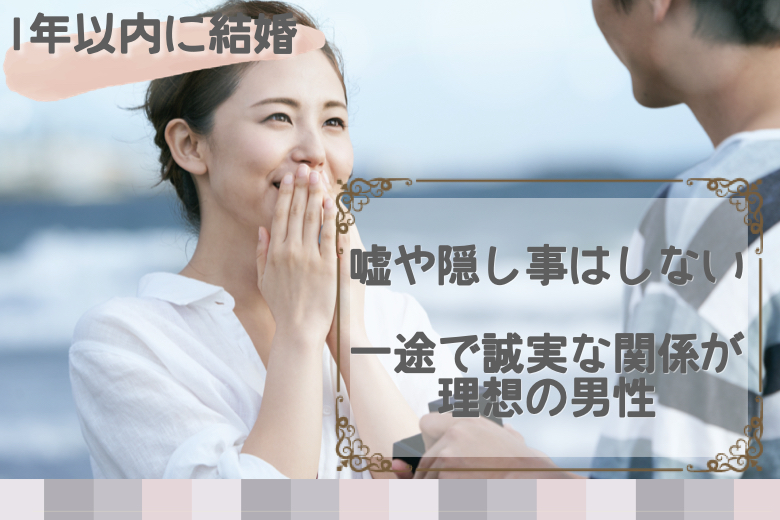 1年以内に結婚したい♪《誠実で素直な性格》&上場企業勤務・年収400万以上などの男性