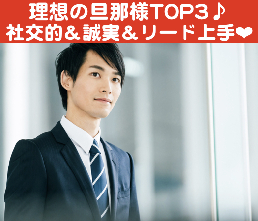 理想の旦那様TOP3♪社交的&誠実&リード上手〜結婚前向き初婚限定〜