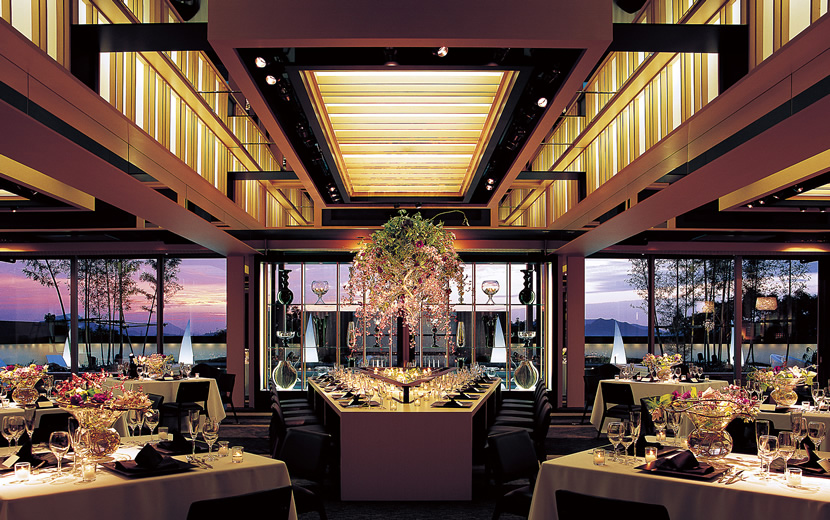 壁一面がガラス張りなので会場に入ると目の前には美しい夜景が広がっていて、