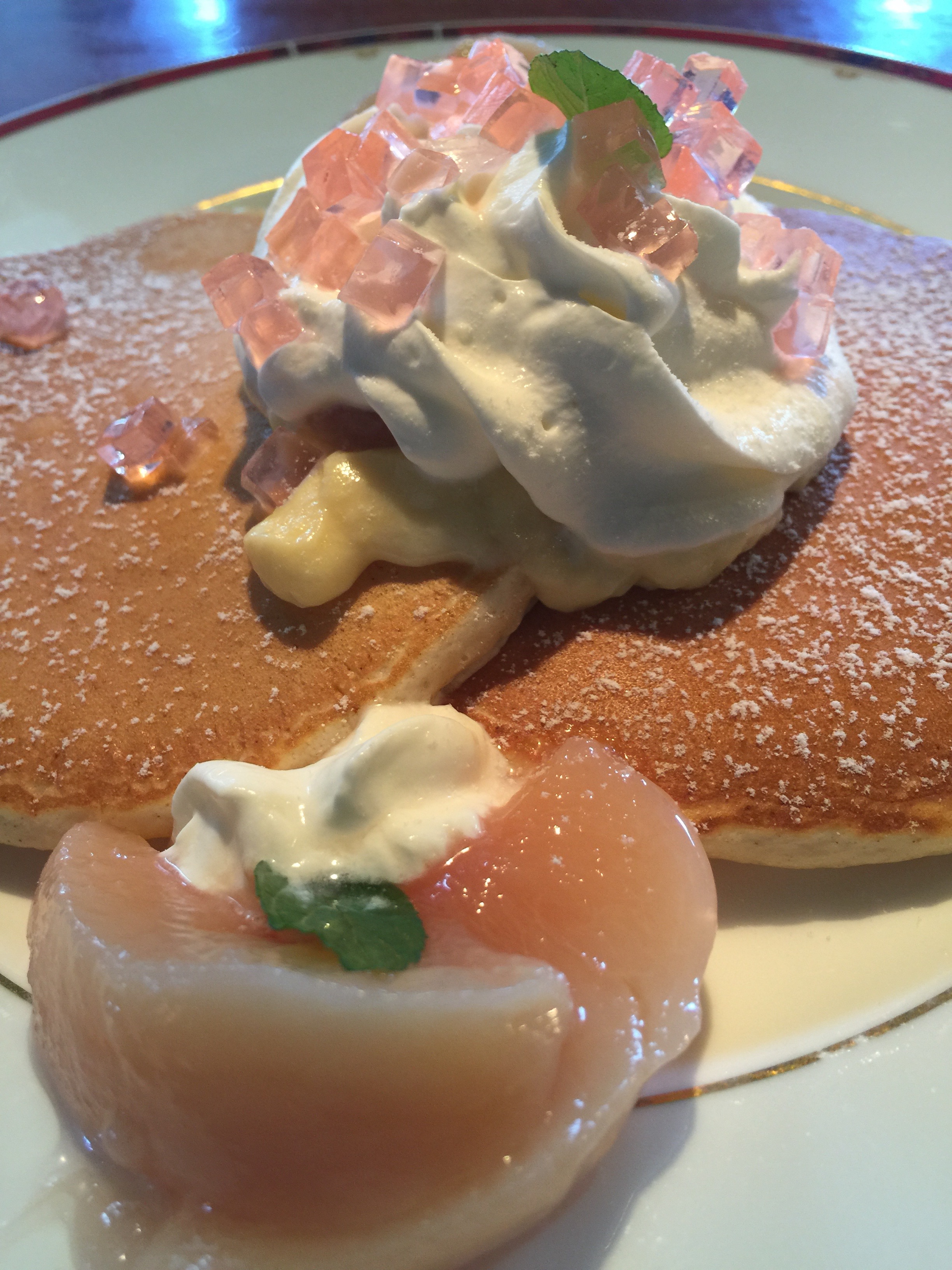 ジャジャ~~ン(∩´∀`)∩〈〈 桃のパンケーキ