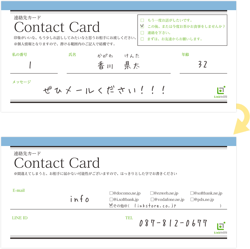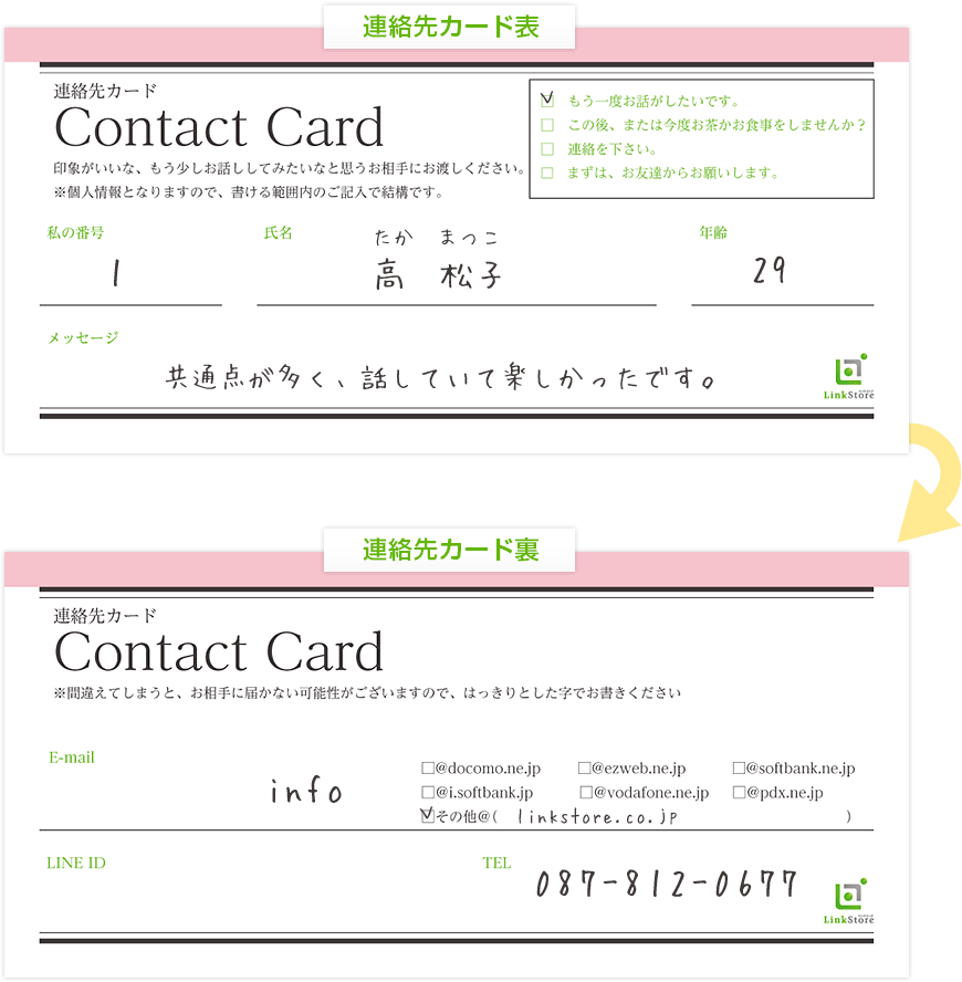 お相手と繋がることができる連絡先カード!「連絡先をもらっていたので交際が始まった」