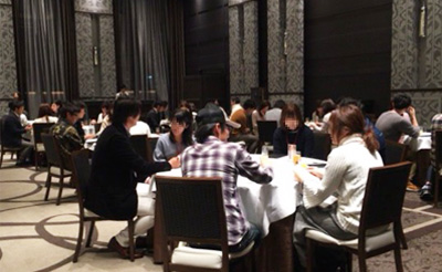 パーティー開始です!プロフィールカードを交換して、異性の方と1対1で数分ずつ自己紹介をしていきます。