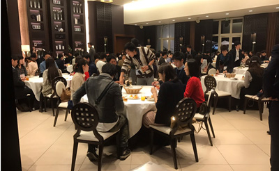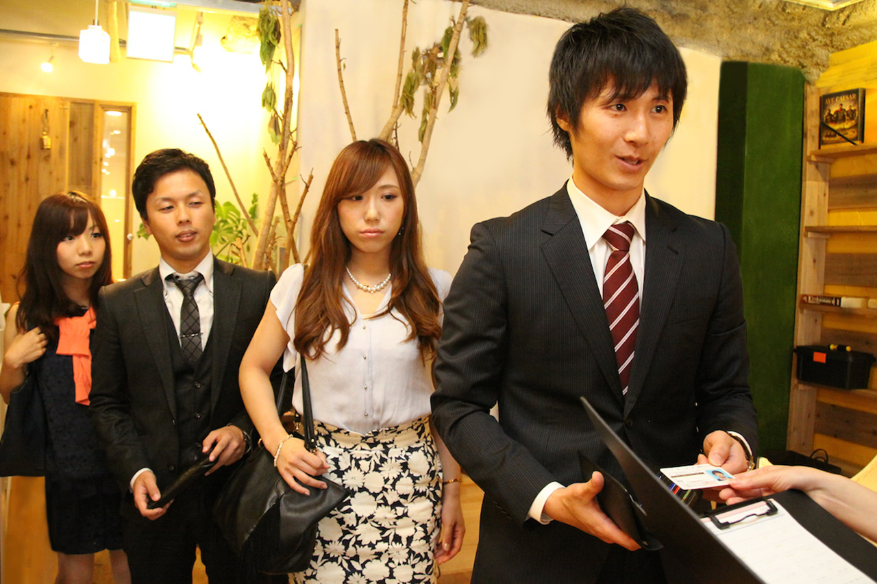 パーティー開始20分前より受付となります。15分くらい前に到着するのがマナーです。