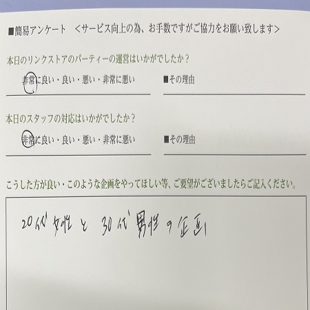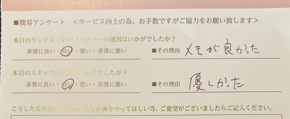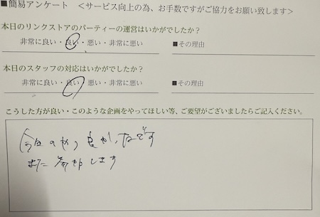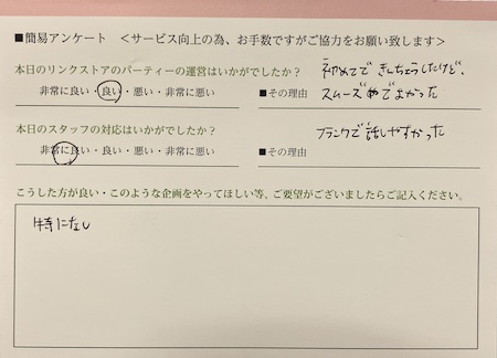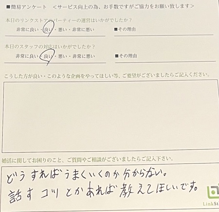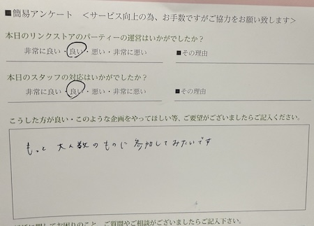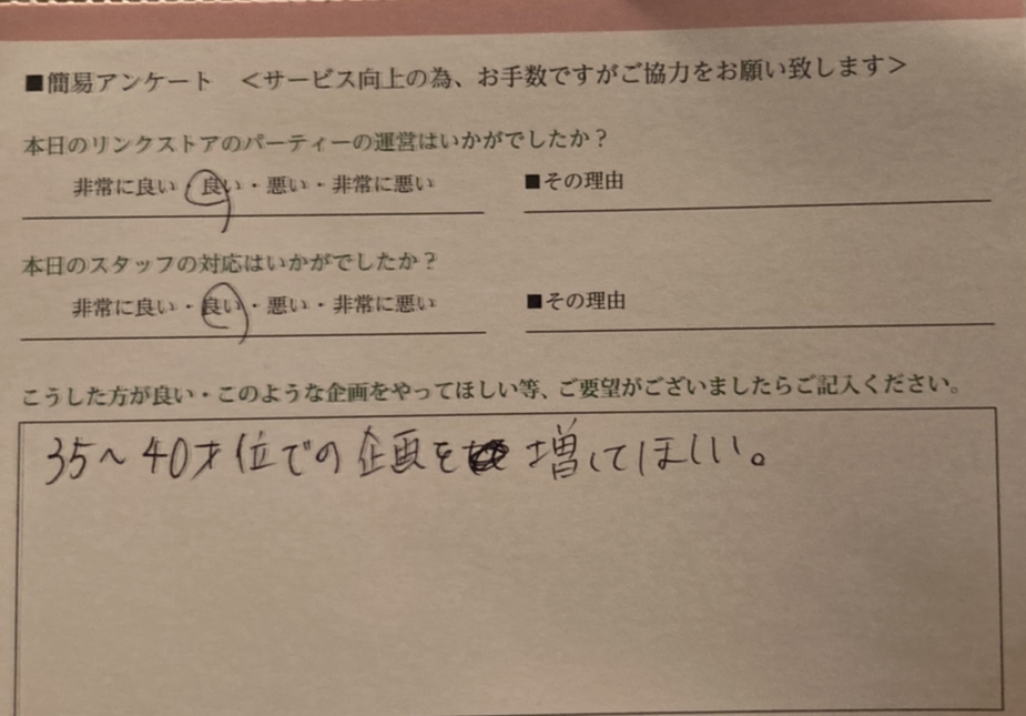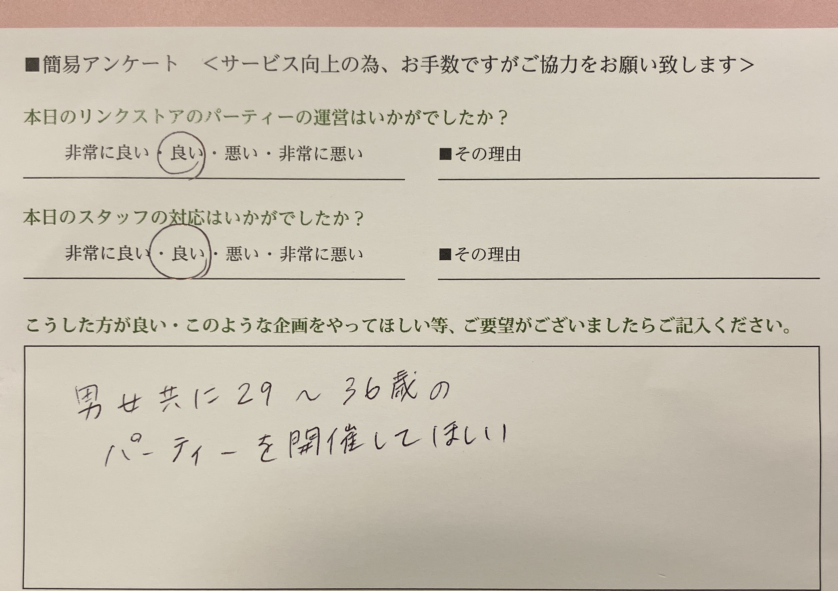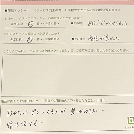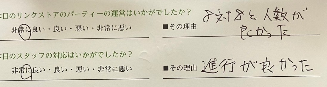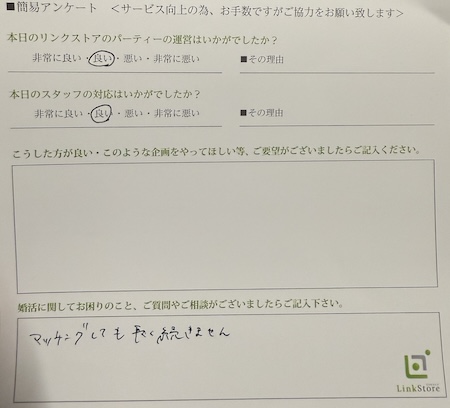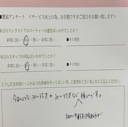 この度はリンクストア 高知エリア婚活パーティーご参加いただきましてありがとうございます