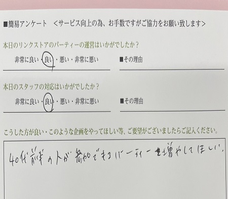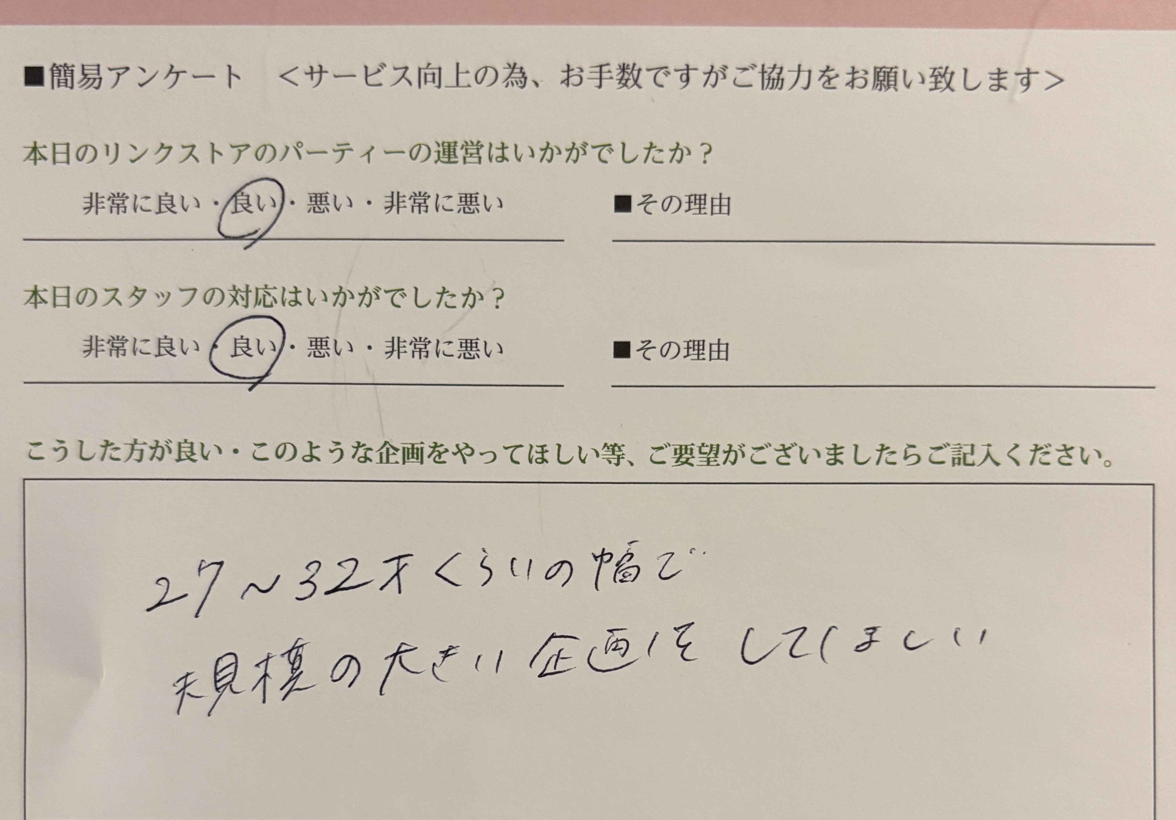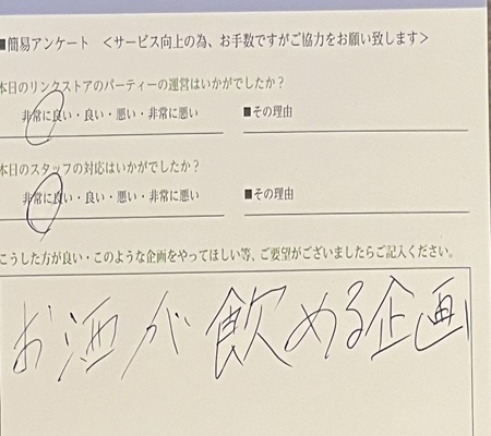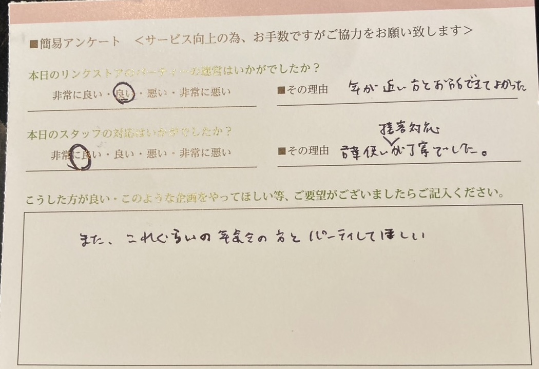 この度はリンクストア愛媛のパーティーにご参加いただきありがとうございます