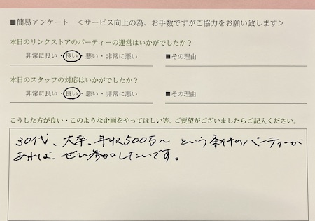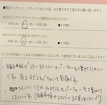 お見合い・婚活パーティーのお客様の声(口コミ)