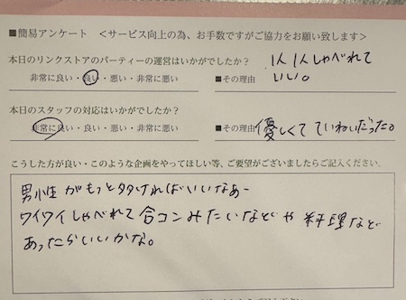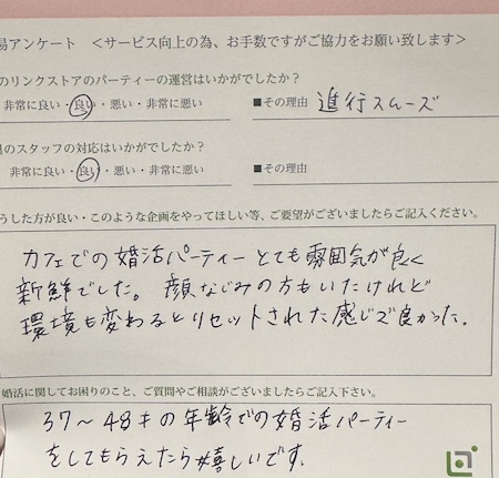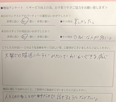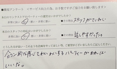 お見合い・婚活パーティーのお客様の声(口コミ)
