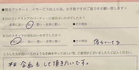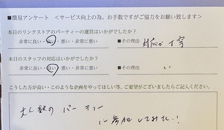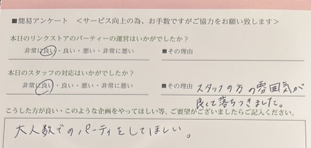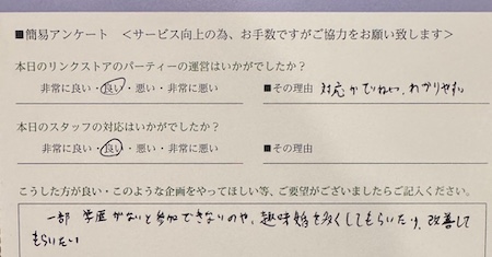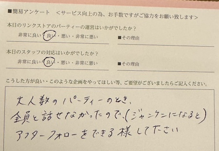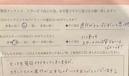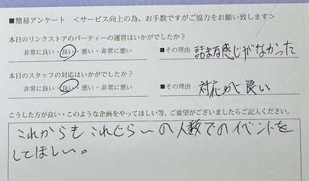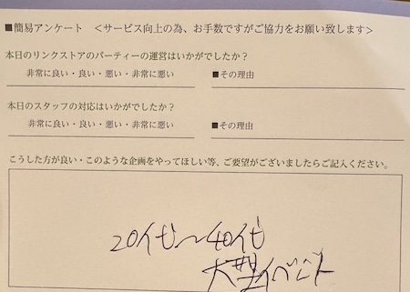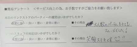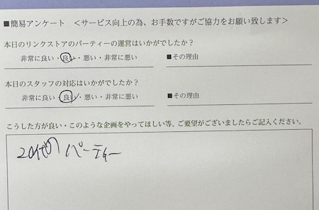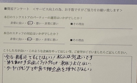 この度はリンクストア愛媛のパーティーにご参加いただきありがとうございました
