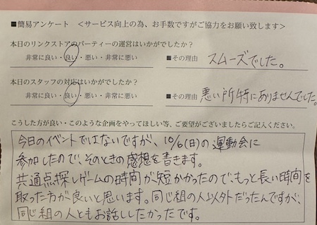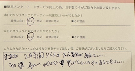 また、運営やスタッフにつきましてもお褒めのお言葉嬉しいです