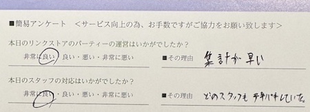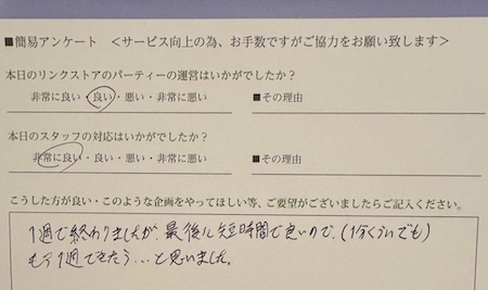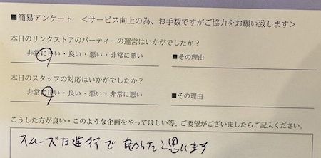 また、進行がスムーズだったとのお褒めの言葉もいただきありがとうございます