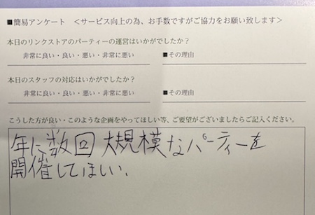 この度はリンクストア愛媛のパーティーにご参加いただきありがとうございます