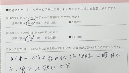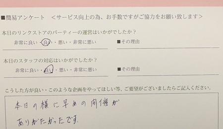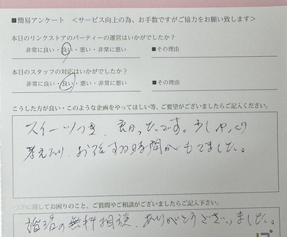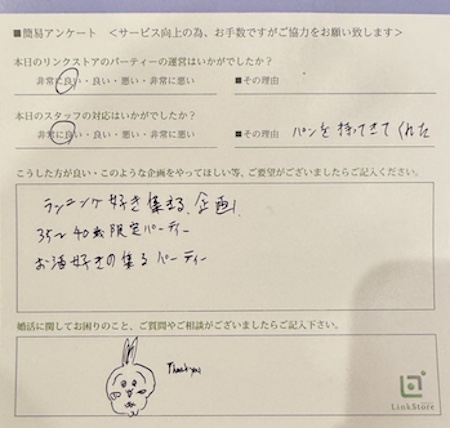 この度はリンクストア愛媛の婚活パーティーにご参加いただきまして誠にありがとうございます