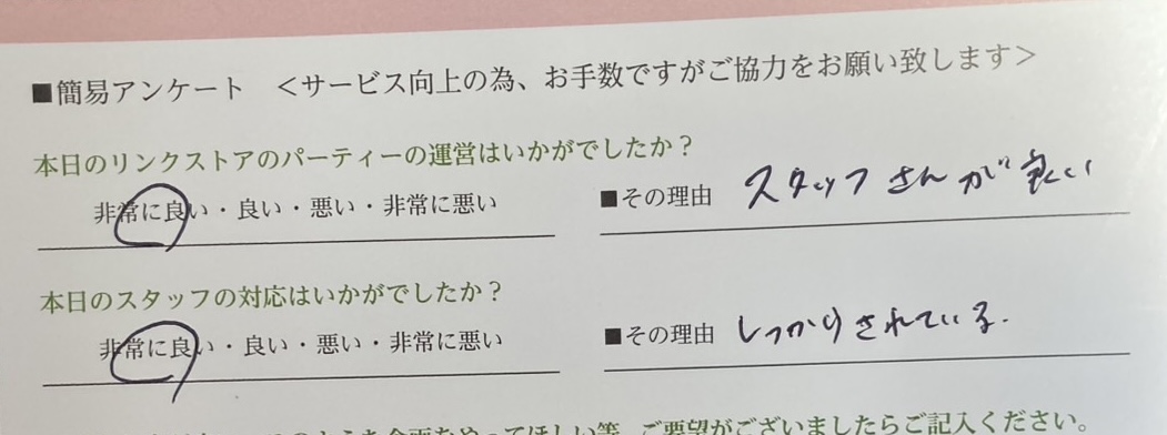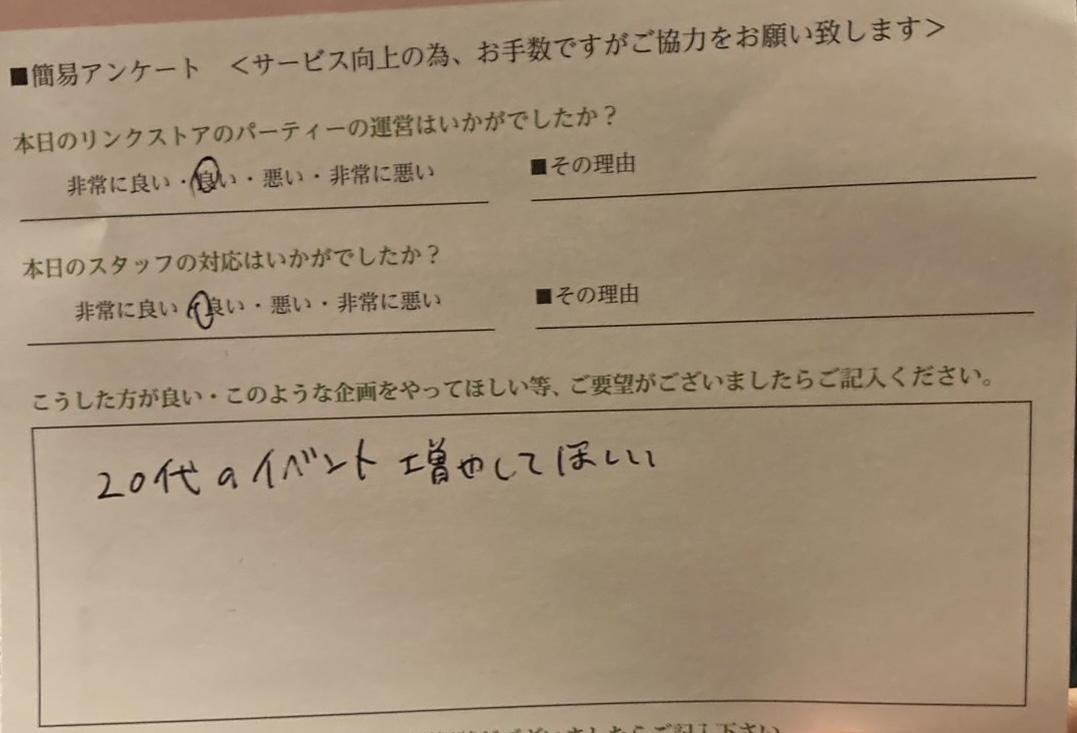 この度はリンクストア広島の婚活パーティーにご参加いただきありがとうございます