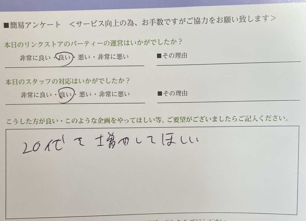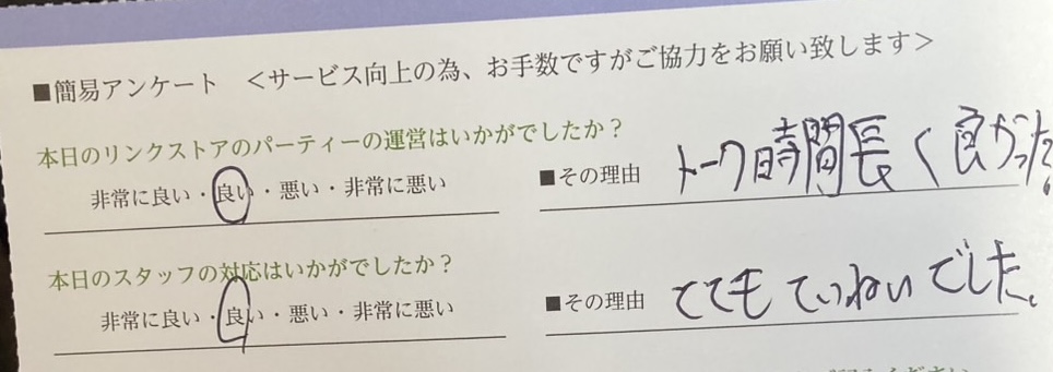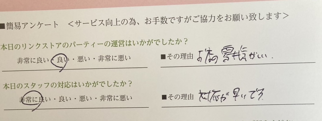 この度はリンクストアのパーティーにご参加いただき誠にありがとうございました
