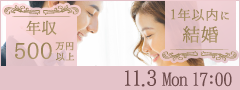 2025-11-03 月 17:00〜 《初婚の男女×1年以内の結婚》〜公務員or年収500万以上男性〜