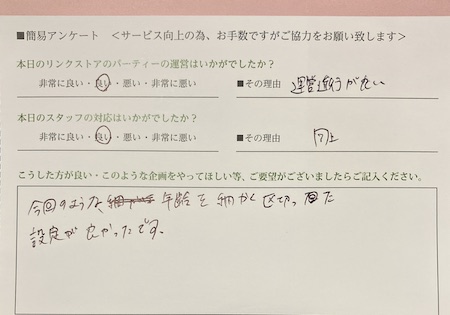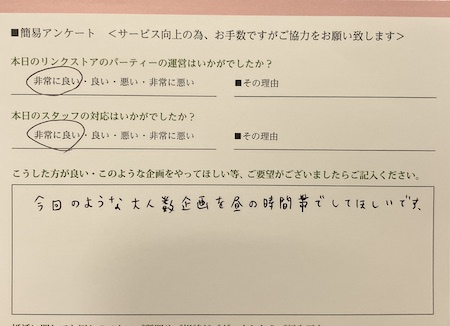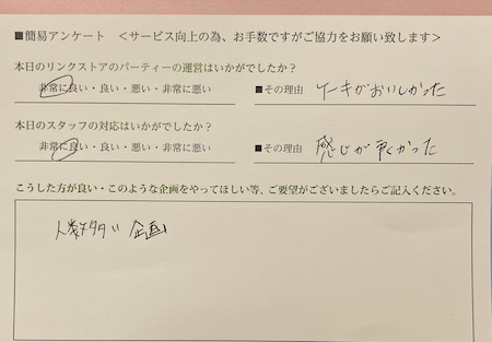 この度はリンクストア香川のパーティーにご参加いただきありがとうございます