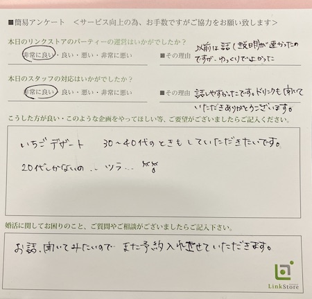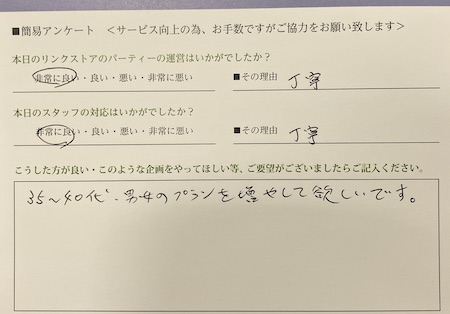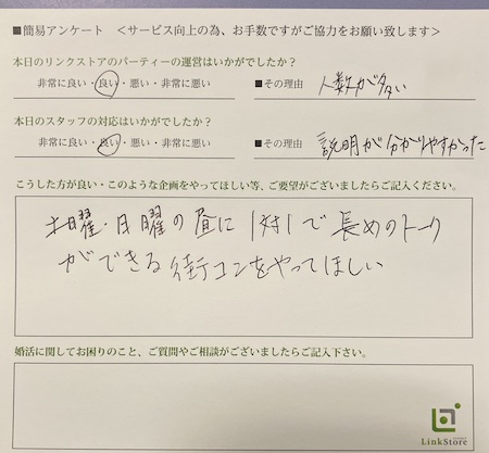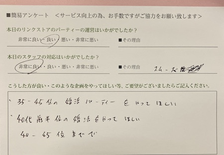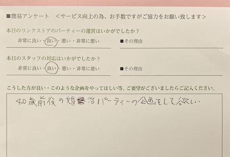 お見合い・婚活パーティーのお客様の声(口コミ)