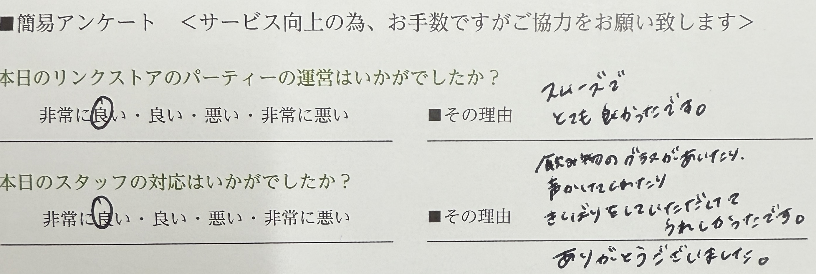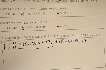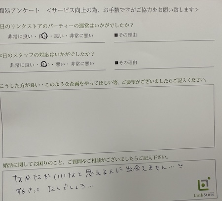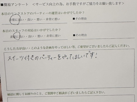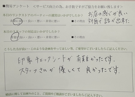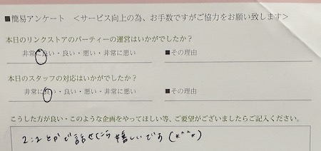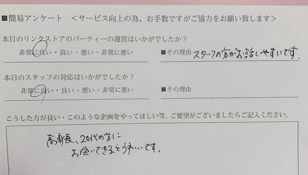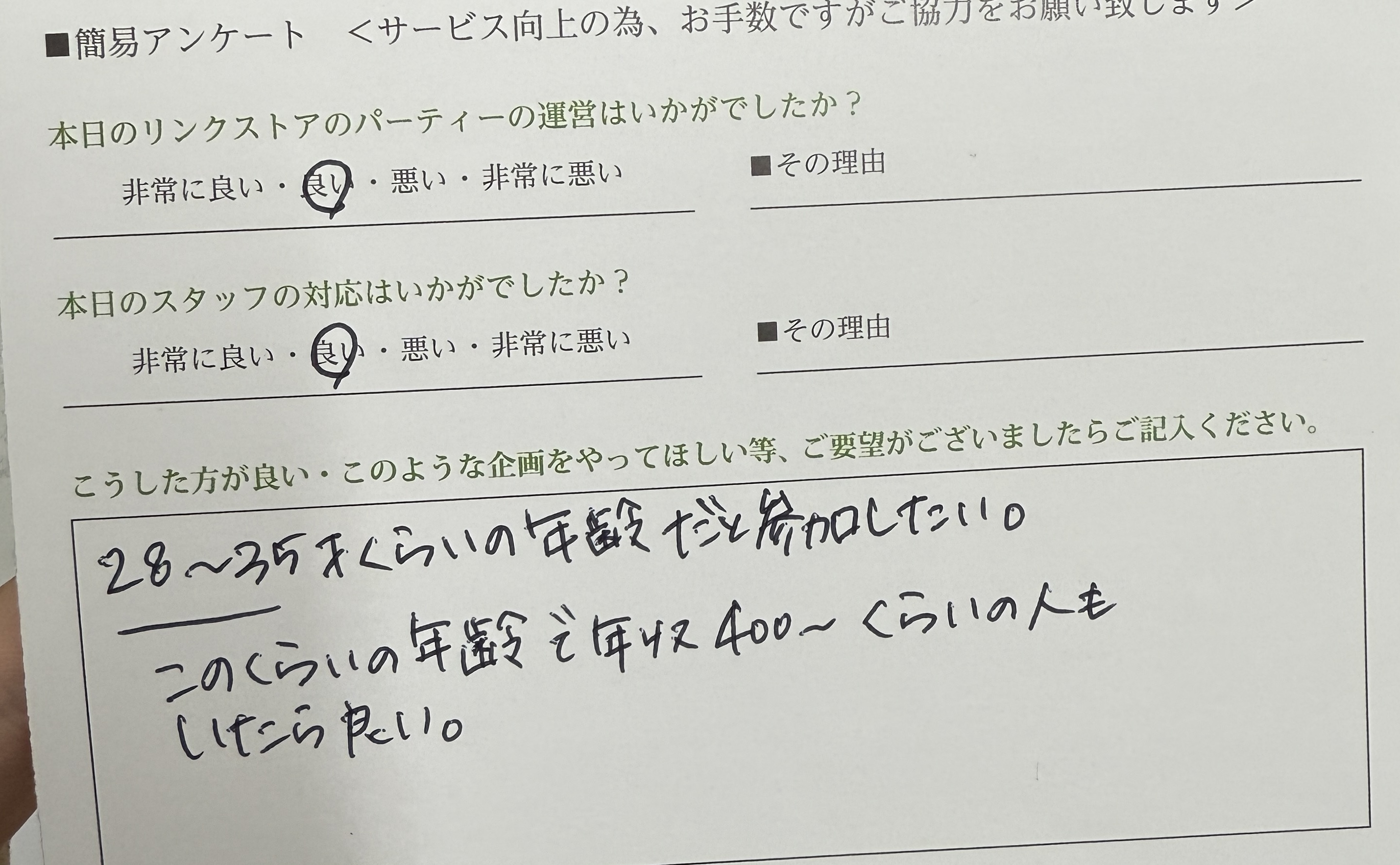 この度はリンクストア岡山の婚活パーティーにご参加いただきまして誠にありがとうございます