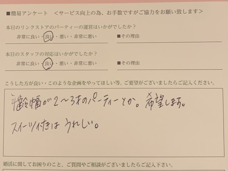 お見合い・婚活パーティーのお客様の声(口コミ)