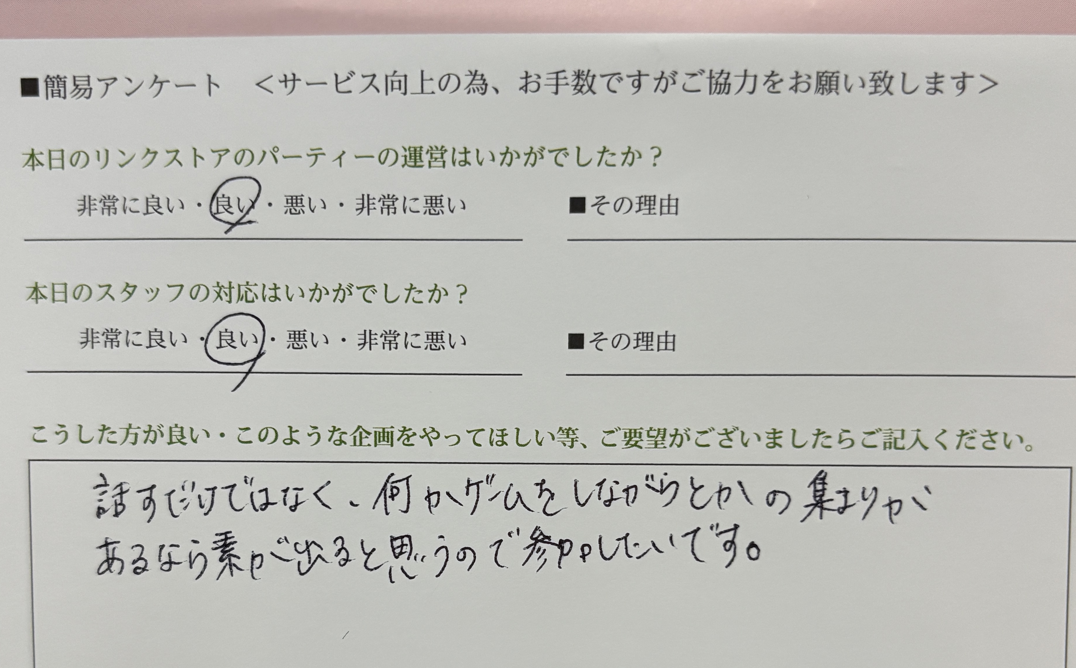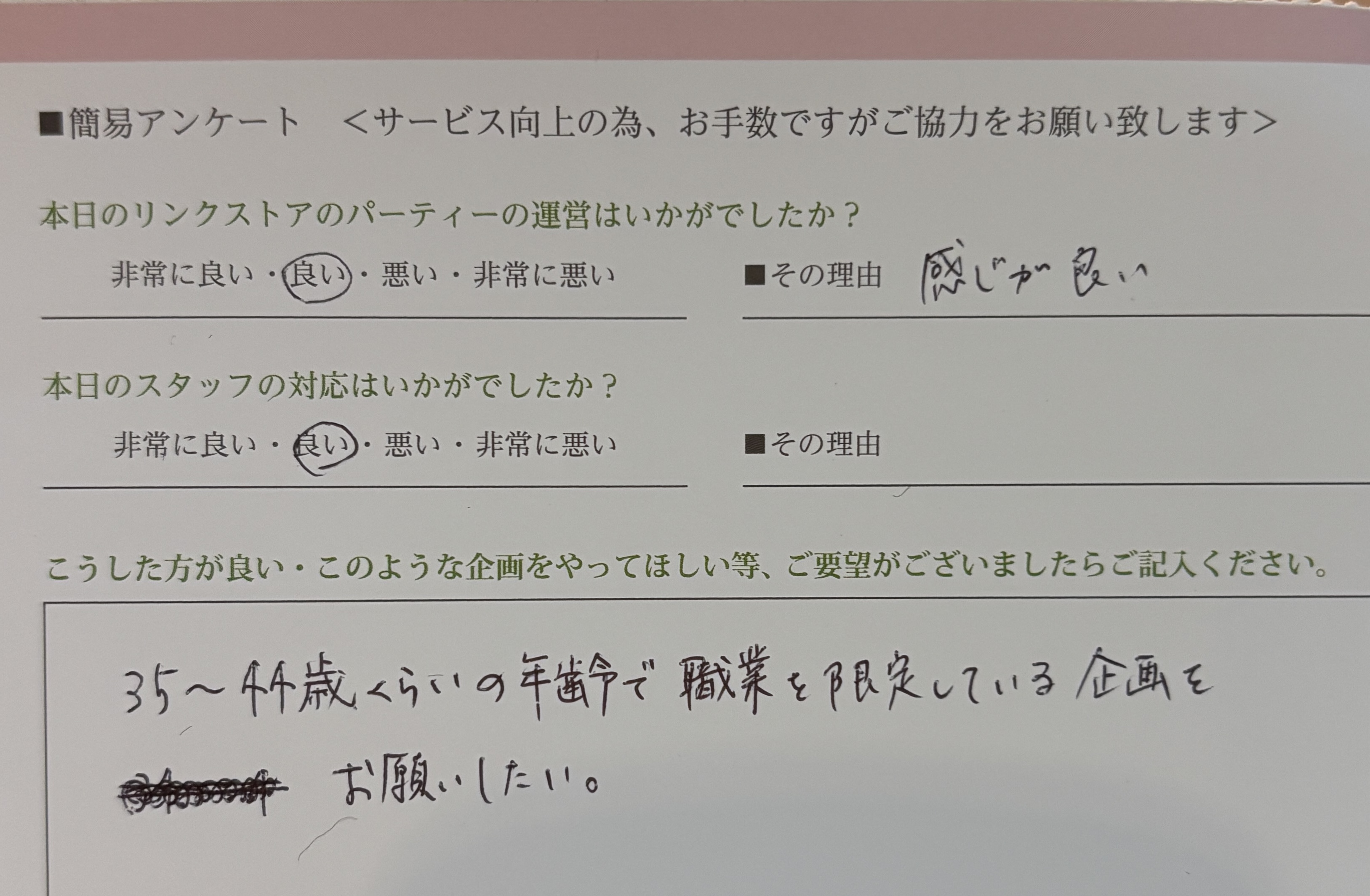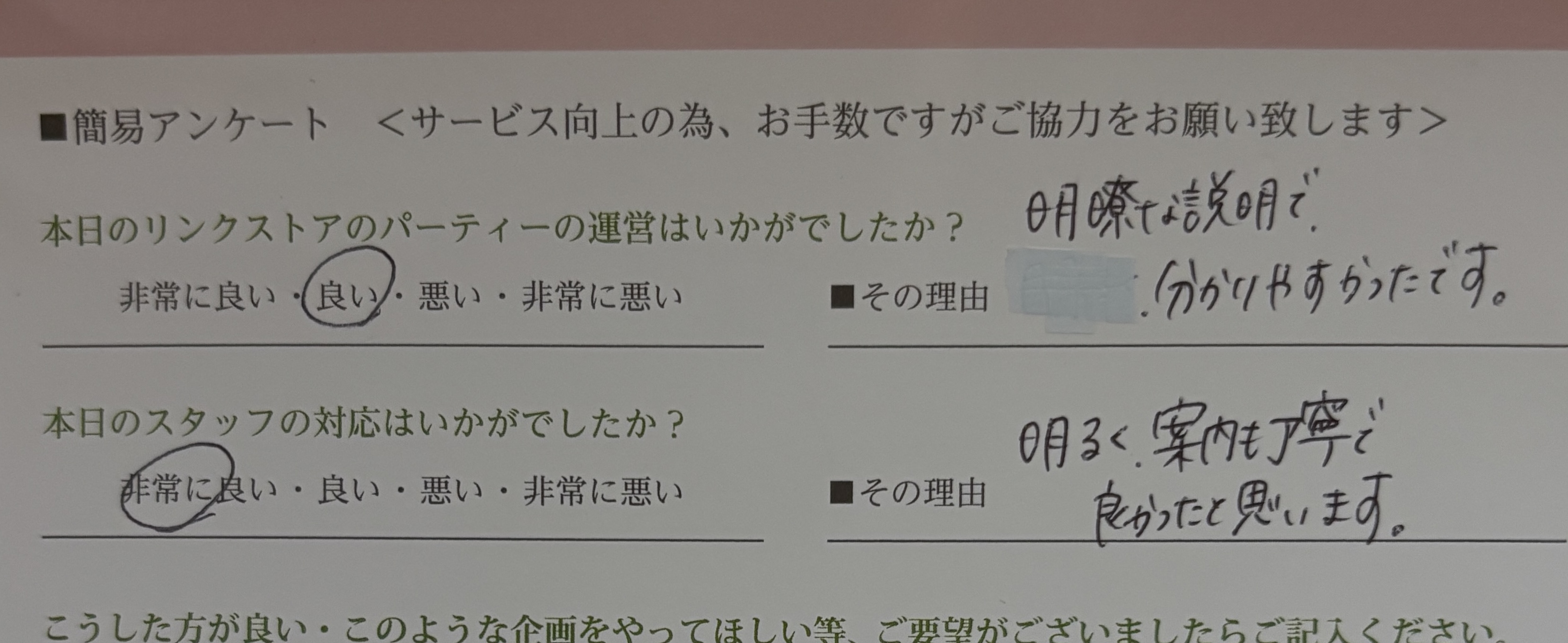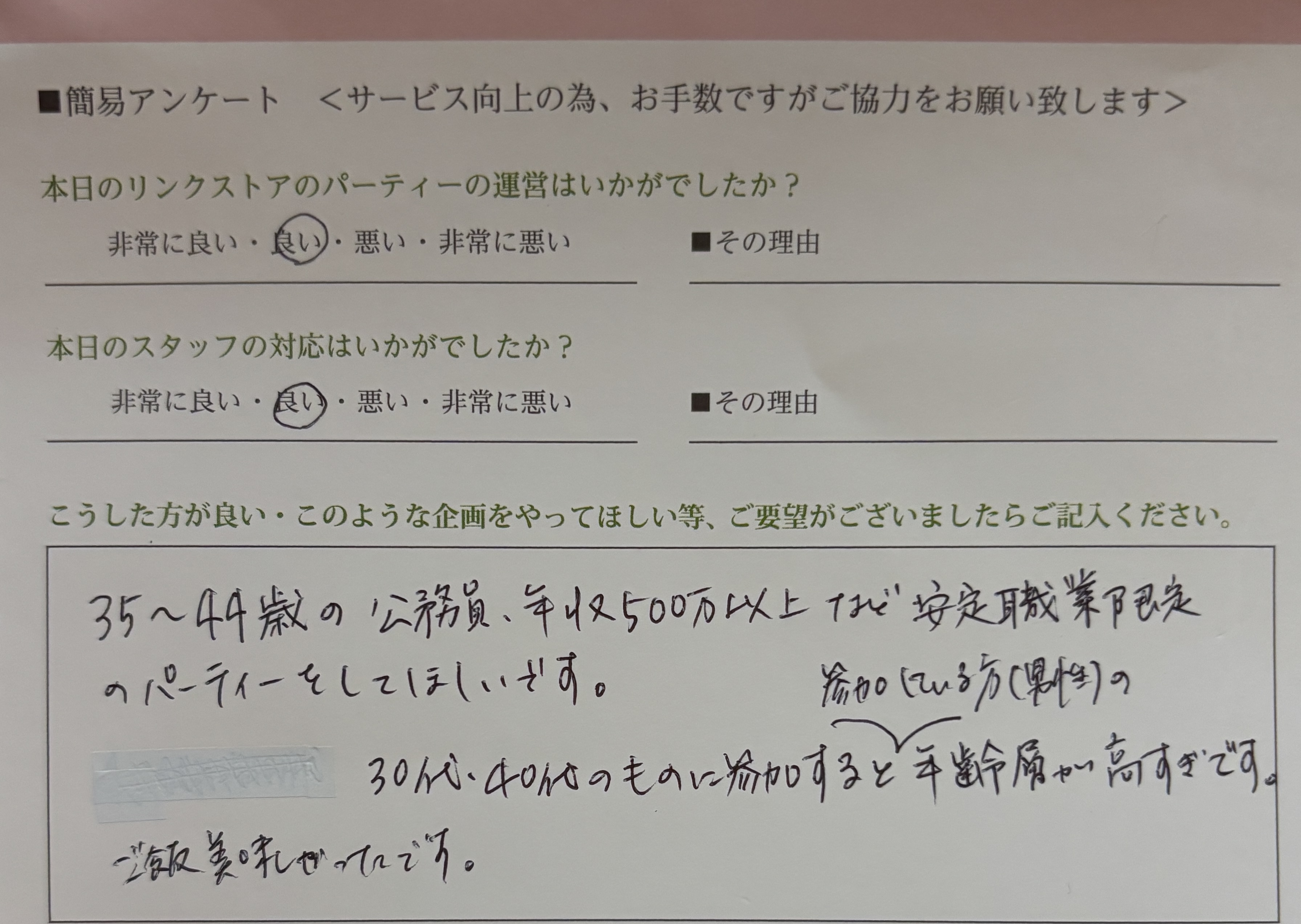 この度はリンクストア徳島の婚活パーティーにご参加いただきまして誠にありがとうございます