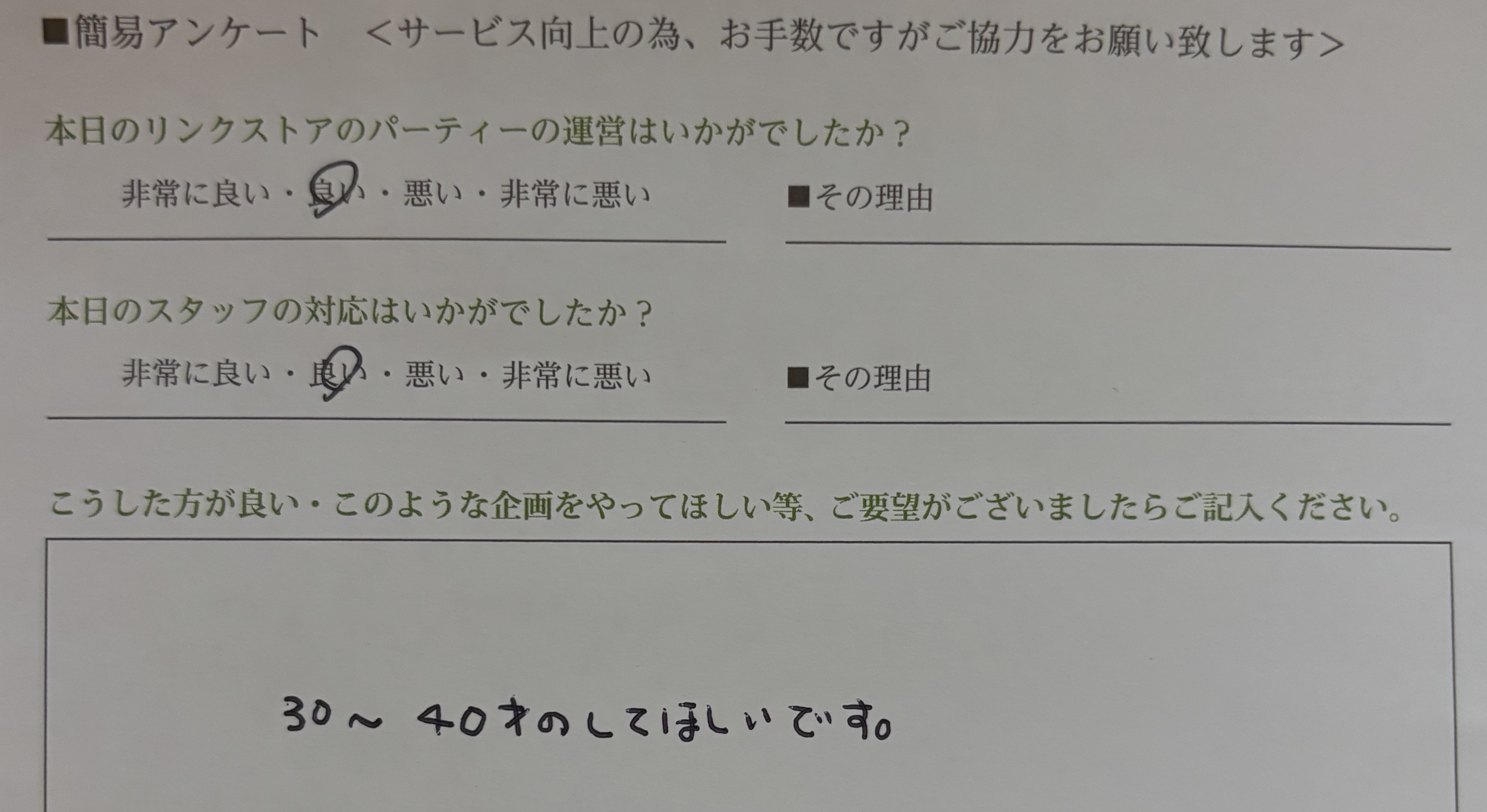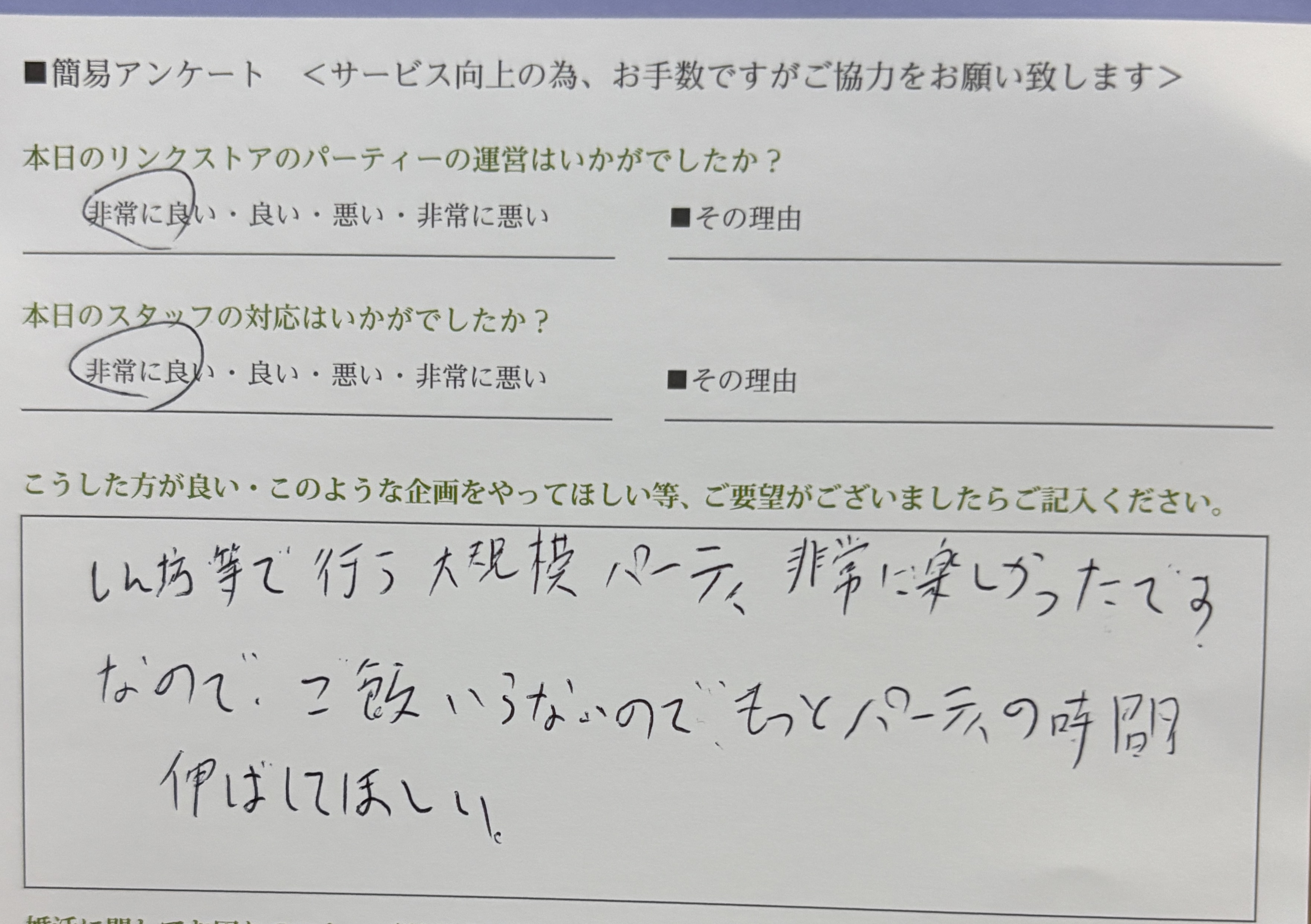 この度はリンクストア徳島のパーティーにご参加いただきありがとうございます
