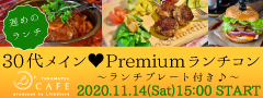2020年09月12日(土)15:00〜 <MAX15:15>男女30代メイン☆Premium遅めのランチコン♪〜ランチプレート付き♪〜