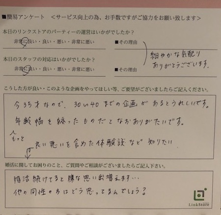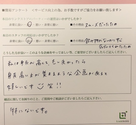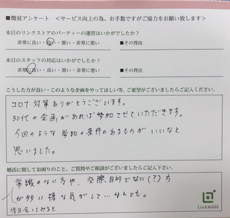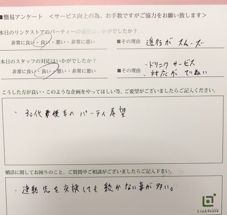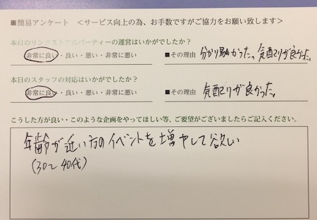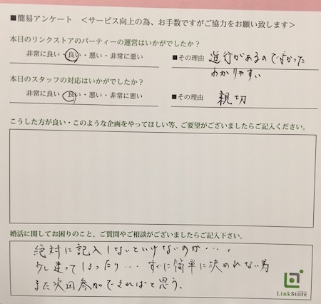 お見合い・婚活パーティーのお客様の声(口コミ)