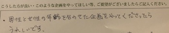 お客様が書いていただいている男性30〜35歳、35〜39歳については