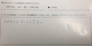 また、スタッフ対応について丁寧といっていただいて