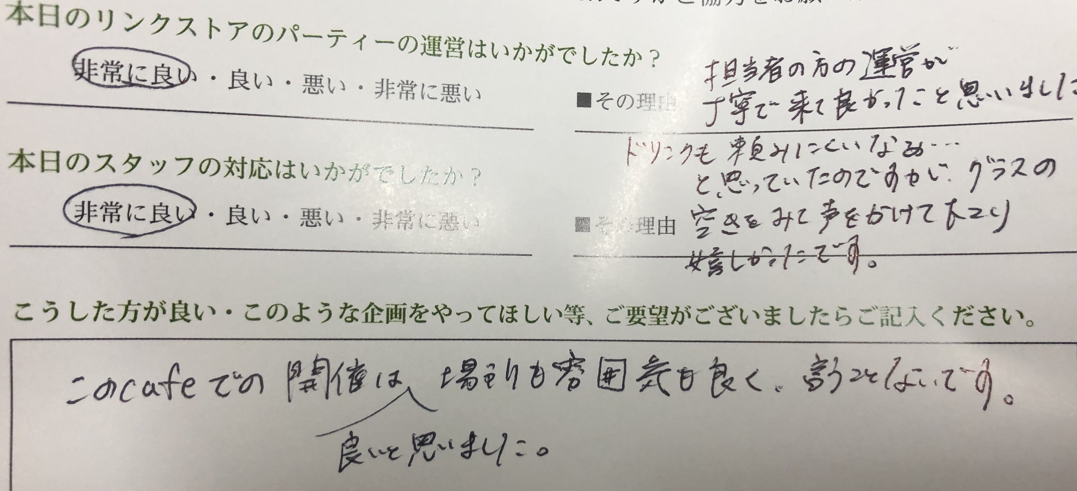 そしてスタッフ対応についてお褒めのお言葉ありがとうございます